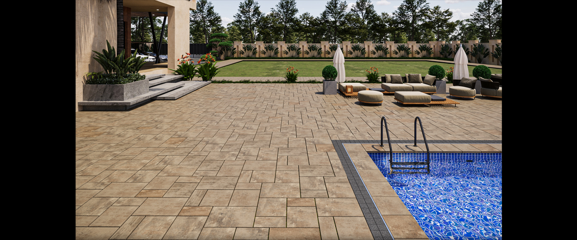 Wrightstone, Istaka's premium paver, is the epitome of elegance and functionality. It offers perfect size and proportion, creating a refined aesthetic. Three stones combine together to create a soft-paved application that minimizes the effect of joints ensuring a seamless surface, ideal for pedestrian zones, large public areas, and wheelchair accessibility. WrightStone is also perfect for pool sides, with a robust, slip-resistant surface that guarantees safety and style.